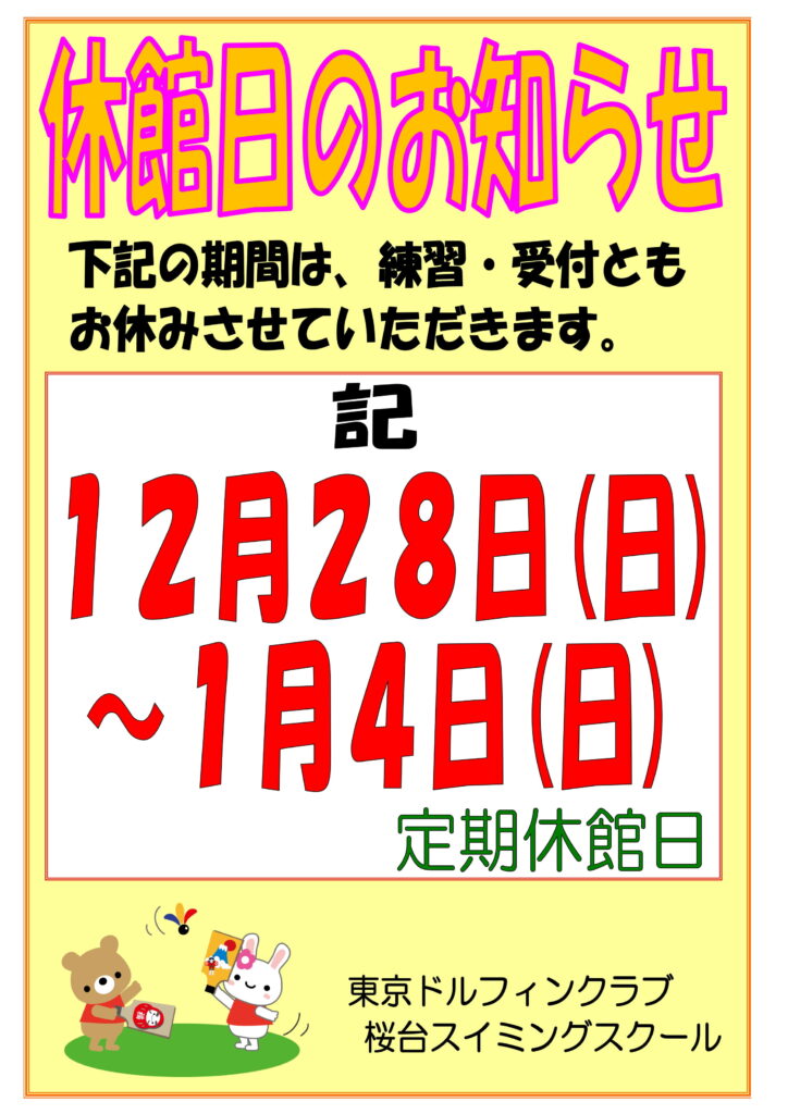 桜台スクールでは、下記の期間は休館日となります。